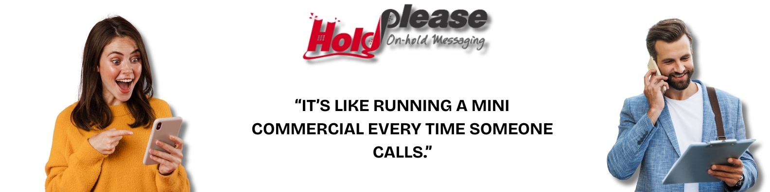 Hold Please specializes in customized on-hold messaging, IVR/auto-attendant voice systems, and in-location audio branding. Whether your customer is calling in, navigating your phone tree, or waiting to be connected, you have their full attention. Hold Please ensures they always hear the right message.